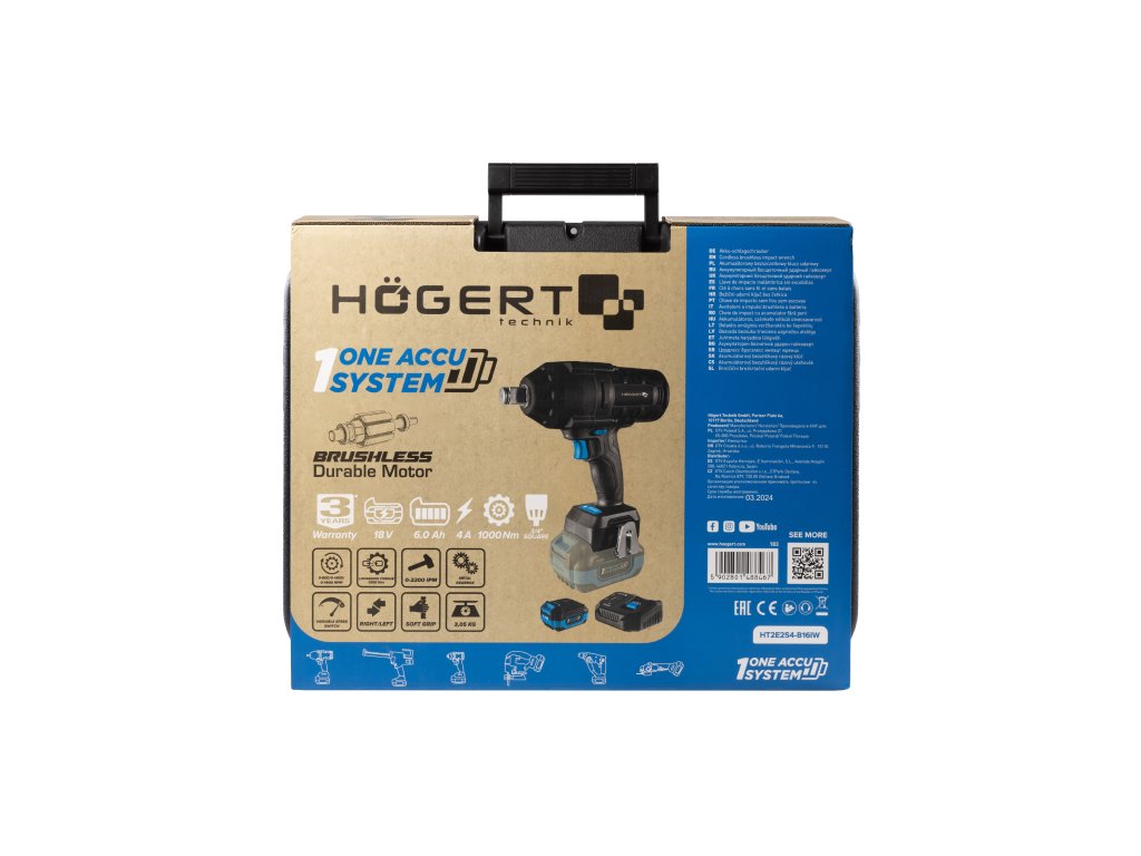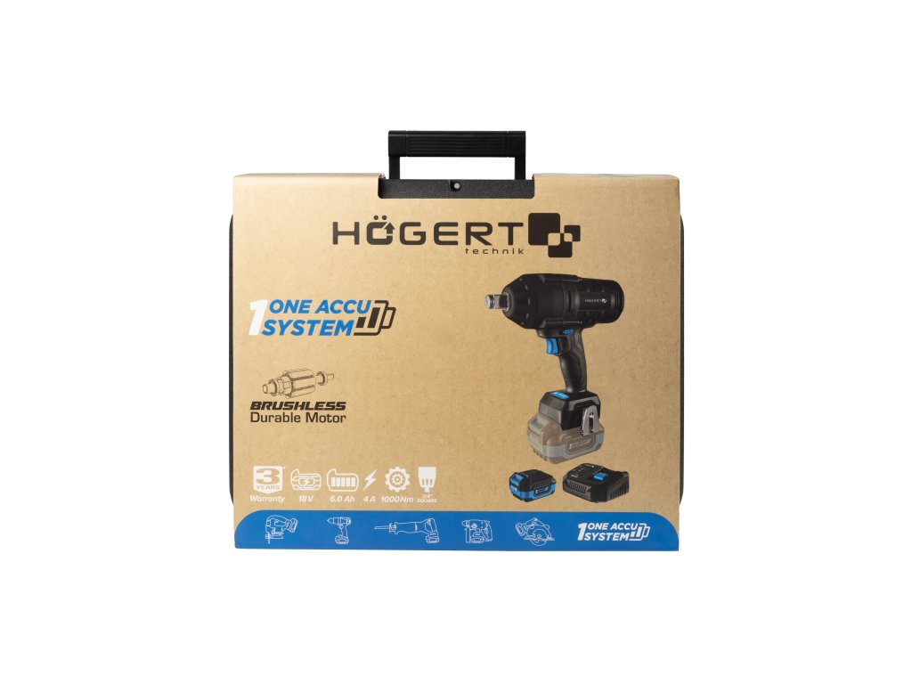 Aku bezuhlíkový rázový utahovák 1000Nm 18V (včetně 1x 6Ah baterie a nabíječky)