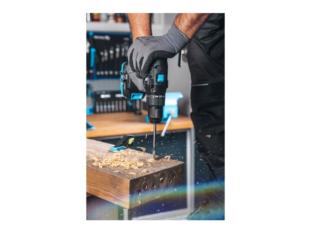 Účinné zařízení pro snadné a rychlé vrtání do dřeva, kovu a pro šroubování a vyšroubování. Vrtací sklíčidlo o průměru 13 mm a krouticí moment 50 Nm umožňují použití větších vrtáků, takže nářadí je univerzálnější pro širokou škálu použití. Dvourychlostní převodovka a 21+1 nastavení krouticího momentu umožňují flexibilní přizpůsobení elektrického nářadí danému materiálu a úkolu. Plynulá regulace otáček na spínači vám dává plnou kontrolu nad vrtáním a šroubováním. Přepínání otáčení elektrického nářadí v obou směrech umožňuje vrtání, šroubování a vyšroubování. Vestavěná silná LED dioda dokonale osvětluje pracovní plochu. Přiložený držák na 6 bitů navíc udržuje příslušenství v pořádku. Odolné kovové samosvorné sklíčidlo s bezpečnostní funkcí „Auto-Lock" umožňuje rychlou výměnu vrtáků a bitů jednou rukou. Odolný kovový kryt převodovky dokonale odvádí teplo, takže jednotka pracuje efektivněji a má delší životnost. Kovová převodovka zvyšuje odolnost proti opotřebení a zajišťuje přesnost chodu mechanismu. Tepelná ochrana, chrání jednotku před přehřátím během provozu. Gumové nárazníky chrání zařízení před mechanickým poškozením. Měkká rukojeť umožňuje bezpečnější uchopení elektrického nářadí a tlumí vibrace při práci. OneAccuSystem 18V umožňuje použití vybraného akumulátoru v širokém a rozmanitém sortimentu elektrického nářadí pro nejnáročnější práce.Měkký krouticí moment - 25 Nm. Tvrdý krouticí moment - 50 Nm. Počet nastavení momentu - 21+1. Počet nastavení rychlosti - 2. Sklíčidlo vrtačky - Auto Lock, kovové, 13 mm. Rychlost otáček: 0-450/0-1700 RPM. Maximální průměr vrtání ve dřevě – 25 mm. Maximální průměr vrtání v oceli – 13 mm. Osvětlení LED Držák na bity. Plynulá regulace otáček na spínači Měkká rukojeť. Přepínač otáčení doprava a doleva. Kovový kryt převodovky. Kovový převodový mechanismus. Ochrana proti přehřátí zařízení. Hmotnost – 1,3 kg. Hladina akustického tlaku - Lpa = 92 dB(A) Hladina akustického výkonu - Lwa = 103 dB(A) Baterii je třeba zakoupit zvlášť. Kod EAN - 5902801441844. 3letá záruka po registraci zařízení. OneAccuSystem. Napětí 18 V;