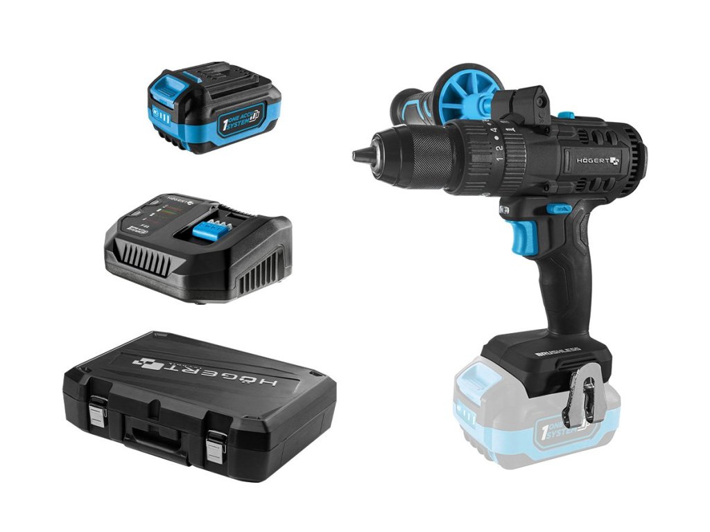 Bezuhlíkový akumulátorový příklepový vrtací šroubovák 18V (včetně 1x 4Ah baterie a nabíječky)