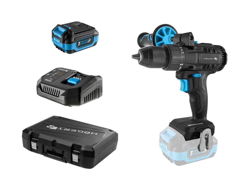 Bezuhlíkový akumulátorový vrtací šroubovák 18V (včetně 1x 4Ah baterie a nabíječky)