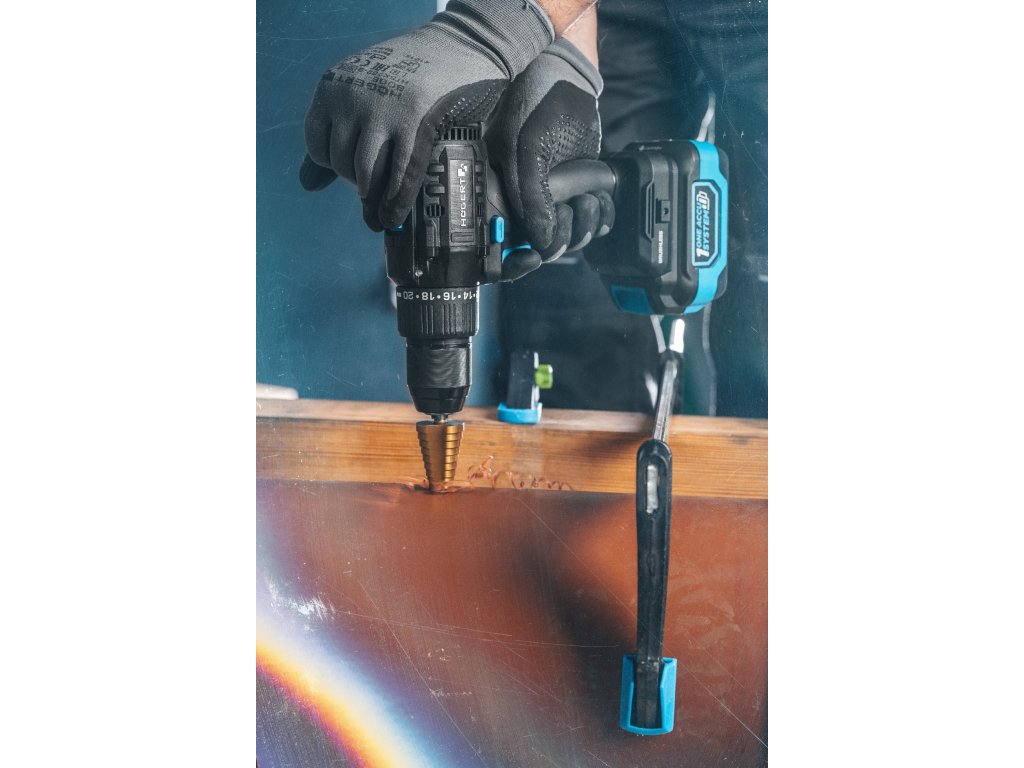 HT2E222-0DD Účinné zařízení pro snadné a rychlé vrtání do dřeva, kovu a pro šroubování a vyšroubování. 13mm vrtací sklíčidlo a točivý moment 80 Nm umožňují použití větších vrtáků, díky čemuž je nástroj všestrannější v široké škále aplikací. Dvourychlostní převodovka a nastavení točivého momentu 20+1 vám umožní flexibilně přizpůsobit chod elektrického nářadí materiálu a úkolu. Plynulá regulace otáček na spínači vám dává plnou kontrolu nad vrtáním a šroubováním. Výkonná vestavěná svítilna LED dokonale osvětluje pracovní plochu. Přídavná antivibrační rukojeť umožňuje lepší ovládání stroje při náročnější práci. Přepínání otáčení elektrického nářadí v obou směrech umožňuje vrtání, šroubování a vyšroubování. Držák na 6 bitů, uspořádání použitého příslušenství. Bezkartáčový motor s inovativní konstrukcí díky eliminaci tření kartáčů a speciálním magnetům poskytuje vyšší výkon, delší dobu chodu a delší životnost elektrického nářadí. Pokročilá elektronika neustále reguluje motor a optimalizuje jeho výkon podle prováděné činnosti, což vede k efektivnímu provozu a maximalizaci životnosti baterie. Motor je chráněn proti vniknutí prachu, kovových částic a zadření. Robustní kovový kryt převodovky dokonale odvádí teplo, takže jednotka pracuje efektivněji a vydrží déle v provozu. Kovová převodovka zvyšuje odolnost proti opotřebení a zajišťuje přesnost mechanismu. Tepelná ochrana, chrání jednotku před přehřátím během provozu. Gumové nárazníky chrání jednotku před mechanickým poškozením. Měkká rukojeť umožňuje bezpečnější uchopení elektrického nářadí a tlumí vibrace při práci. Systém OneAccuSystem 18V umožňuje použití vybraného akumulátoru v širokém a rozmanitém spektru elektrického nářadí pro nejnáročnější práce. HT2E242-C60: Účinná nabíječka, která nabije baterii o kapacitě 2 Ah za pouhých cca 30 min. Pokročilý elektronický modul monitoruje napětí a teplotu baterie, aby se maximalizovala účinnost nabíjecího procesu a zajistila dlouhá životnost baterie. Ochrana proti přehřátí prodlužuje životnost a výdrž baterie. Proudová ochrana proti zkratu zvyšuje bezpečnost procesu nabíjení. Sledování úrovně nabití článků prodlužuje jejich životnost. Indikátory zobrazují stav baterie a proces nabíjení. HT2E240-A40: Perfektně vyvážená baterie s nízkou hmotností, malými rozměry a kapacitou pro mnoho různých zařízení v nabídce značky. Pokročilý elektronický modul monitoruje provoz baterie pro dosažení maximálního výkonu, doby provozu, zvýšené odolnosti a bezpečnosti. Ochrana článků proti přehřátí prodlužuje jejich provozní dobu a zvyšuje jejich životnost. Proudová ochrana proti zkratu zvyšuje bezpečnost provozu a skladování baterie. Monitorování úrovně nabití článků prodlužuje jejich životnost. Články vyrobené nejnovější lithium-iontovou (Li-Ion) technologií zajišťují vysokou energetickou účinnost, odolnost a spolehlivost. Kryt chráněný pryžovými nárazníky chrání před mechanickým poškozením. Ochrana článků před vlhkostí. Možnost provozu od -18 ℃ vnější provozní teploty, rozšiřuje rozsah použití nástroje. Indikátor stavu nabití zobrazuje zbývající dostupnou energii.