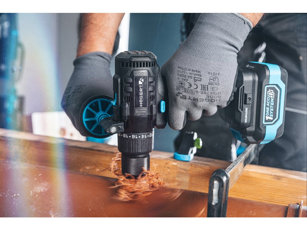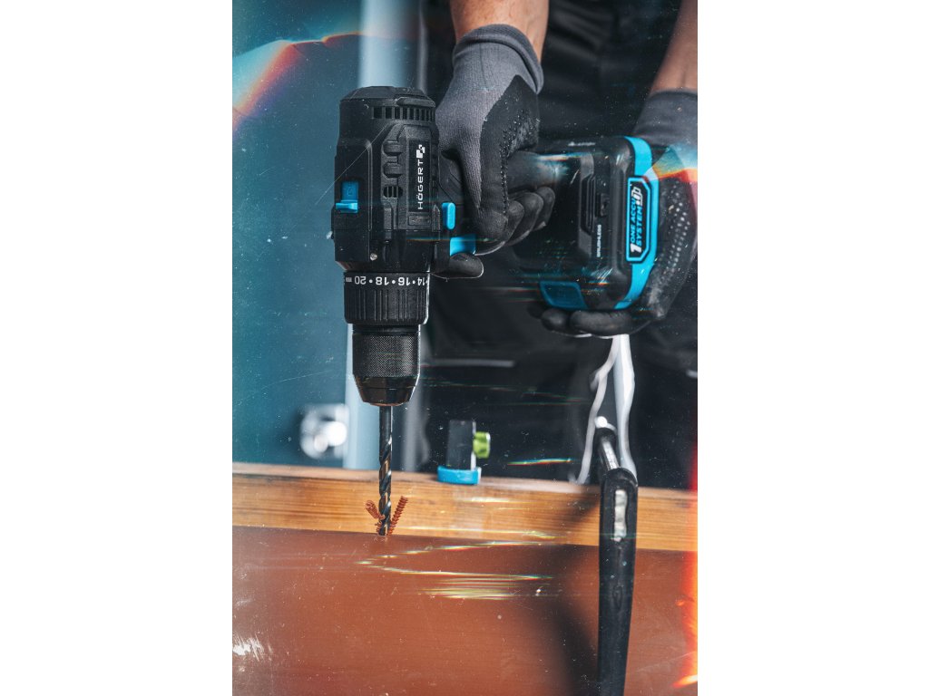 Účinné zařízení pro snadné a rychlé vrtání do dřeva, kovu a pro šroubování a vyšroubování. 13mm vrtací sklíčidlo a točivý moment 80 Nm umožňují použití větších vrtáků, díky čemuž je nástroj všestrannější v široké škále aplikací. Dvourychlostní převodovka a nastavení točivého momentu 20+1 vám umožní flexibilně přizpůsobit chod elektrického nářadí materiálu a úkolu. Plynulá regulace otáček na spínači vám dává plnou kontrolu nad vrtáním a šroubováním. Výkonná vestavěná svítilna LED dokonale osvětluje pracovní plochu. Přídavná antivibrační rukojeť umožňuje lepší ovládání stroje při náročnější práci. Přepínání otáčení elektrického nářadí v obou směrech umožňuje vrtání, šroubování a vyšroubování. Držák na 6 bitů, uspořádání použitého příslušenství. Bezkartáčový motor s inovativní konstrukcí díky eliminaci tření kartáčů a speciálním magnetům poskytuje vyšší výkon, delší dobu chodu a delší životnost elektrického nářadí. Pokročilá elektronika neustále reguluje motor a optimalizuje jeho výkon podle prováděné činnosti, což vede k efektivnímu provozu a maximalizaci životnosti baterie. Motor je chráněn proti vniknutí prachu, kovových částic a zadření. Robustní kovový kryt převodovky dokonale odvádí teplo, takže jednotka pracuje efektivněji a vydrží déle v provozu. Kovová převodovka zvyšuje odolnost proti opotřebení a zajišťuje přesnost mechanismu. Tepelná ochrana, chrání jednotku před přehřátím během provozu. Gumové nárazníky chrání jednotku před mechanickým poškozením. Měkká rukojeť umožňuje bezpečnější uchopení elektrického nářadí a tlumí vibrace při práci. Systém OneAccuSystem 18V umožňuje použití vybraného akumulátoru v širokém a rozmanitém spektru elektrického nářadí pro nejnáročnější práce.