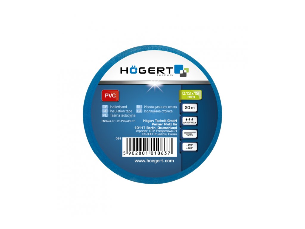 - šířky 19 mm, tloušťky 0,13 mm, délky 20 m.