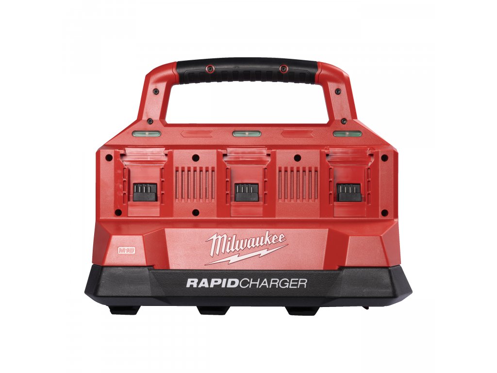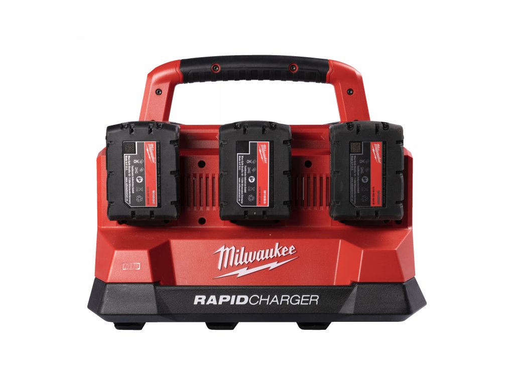 Nabíjení až 6 akumulátorů M18™ současně Nabíječka disponuje 6 samostatnými sloty pro akumulátory M18™, což vám umožňuje nabíjet až 6 baterií najednou. Díky tomu ušetříte čas a zajistíte, že budete mít vždy dostatek nabitých akumulátorů pro celodenní práci.
