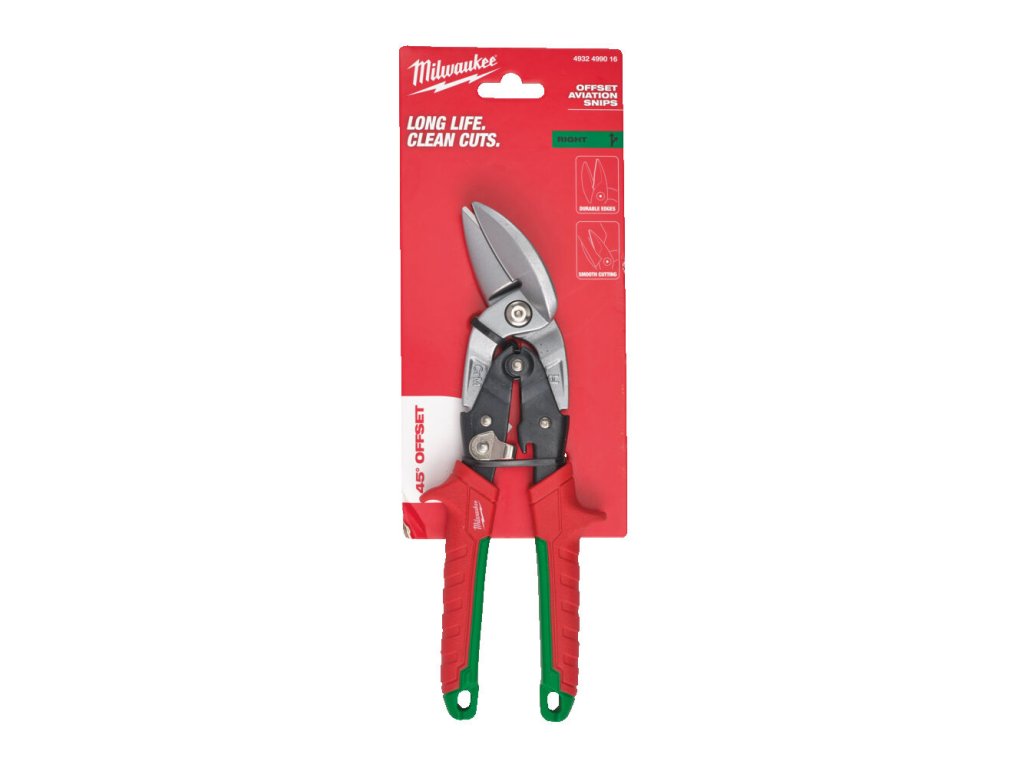 - Offsetové nůžky: pro nepřetržité rovné nebo zakřivené řezy. Posun drážky: 45 ° - drží ruku uživatele daleko od obrobku.