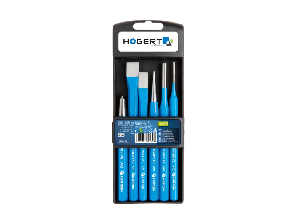 Sada 6 ks dlát, razníků a razidel. Určeno pro řezání, děrování a razení tvrdých materiálů.- vysoce kvalitní chrom-vanadová legovaná ocel;