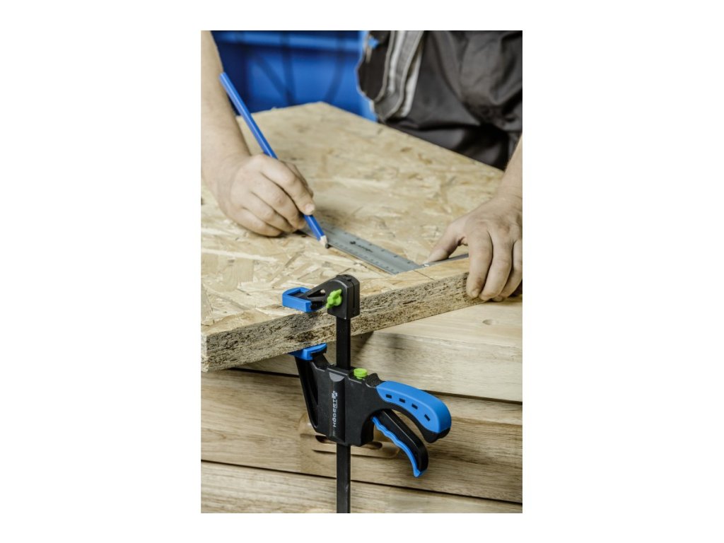 Tesařská svěrka pro rychlé, bodové upevnění při lepení a přidržování prvků, např. v tesařských a zámečnických pracích.- odolná a stabilní profilovaná ocelová posuvná lišta